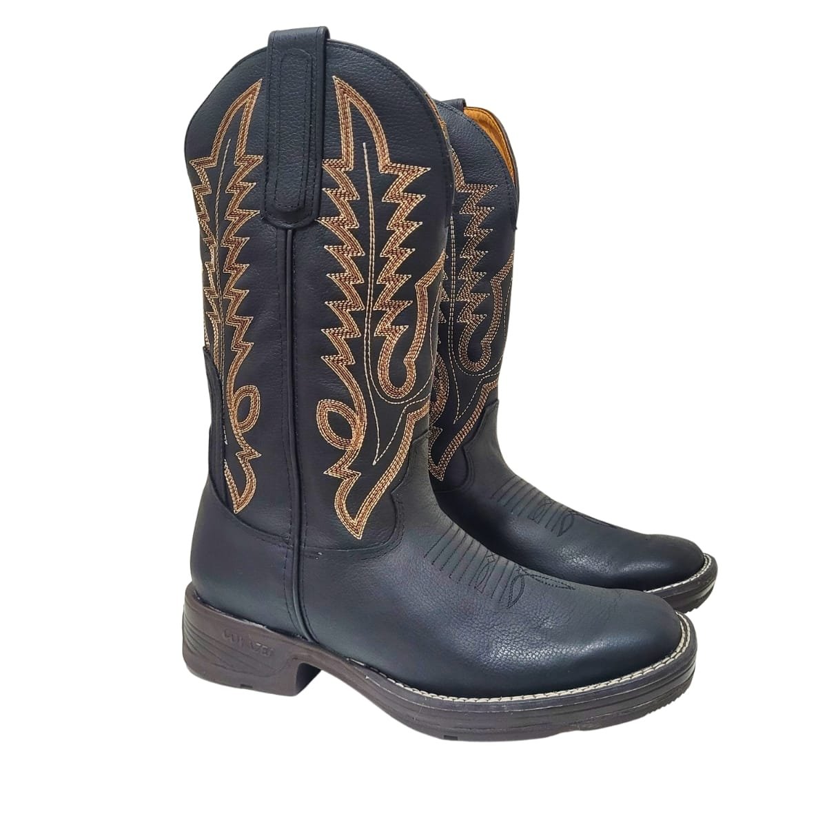 Bota Goyazes Texana Masculina Couro Pit Stop Preto – 241505-CJ
