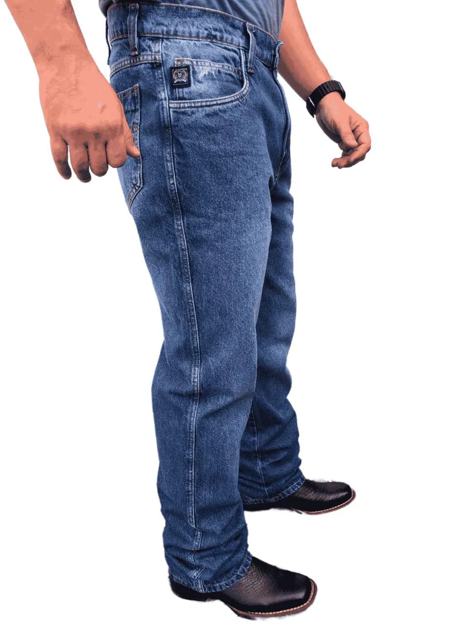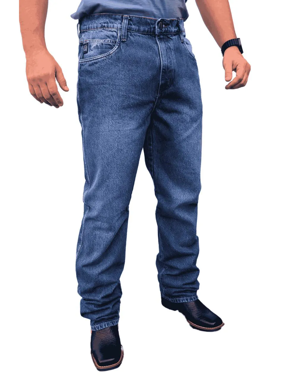 - Apresenta cintura justa, coxa relaxada/larga e perna reta (permitindo que a boca da calça caia perfeitamente sobre a bota country).