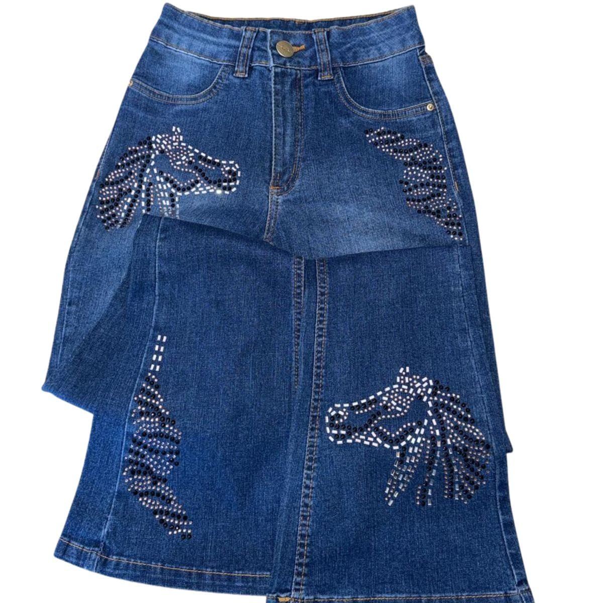 A Calça Infantil Feminina Os Vaqueiros com Brilho (Ref: V23-10055) é uma das peças mais modernas e desejadas da coleção recente da marca. Ela foi desenhada para a pequena “cowgirl” que quer se destacar, unindo o corte funcional do campo com o acabamento de moda urbana.