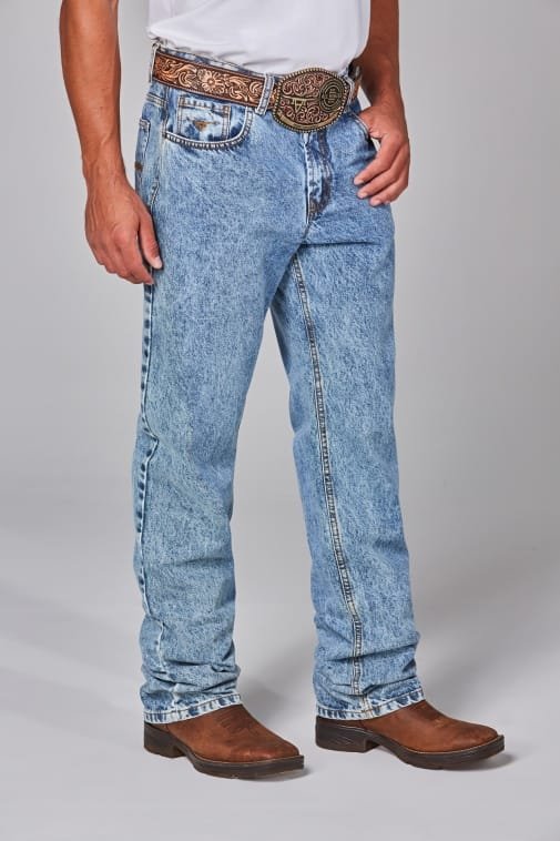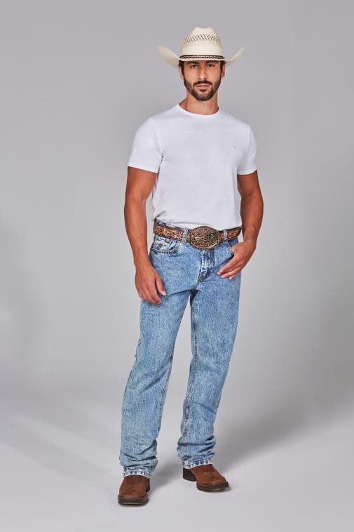 MaterialNormalmente 100% Algodão. Modelos clássicos e de marcas country que usam a lavagem Hiper Stone, como a All Hunter, costumam ser feitos em 100% Algodão, garantindo durabilidade e o caimento tradicional do jeans.