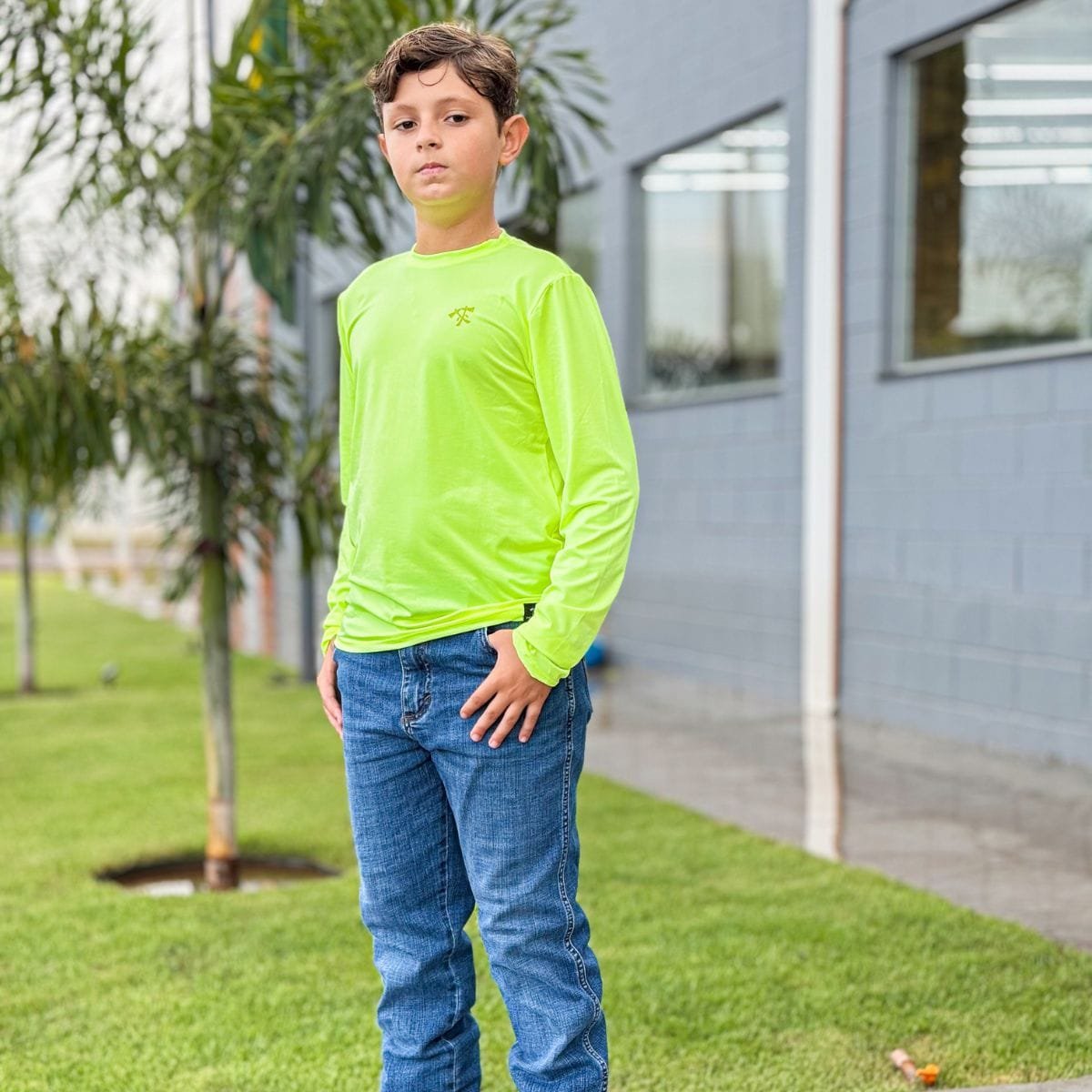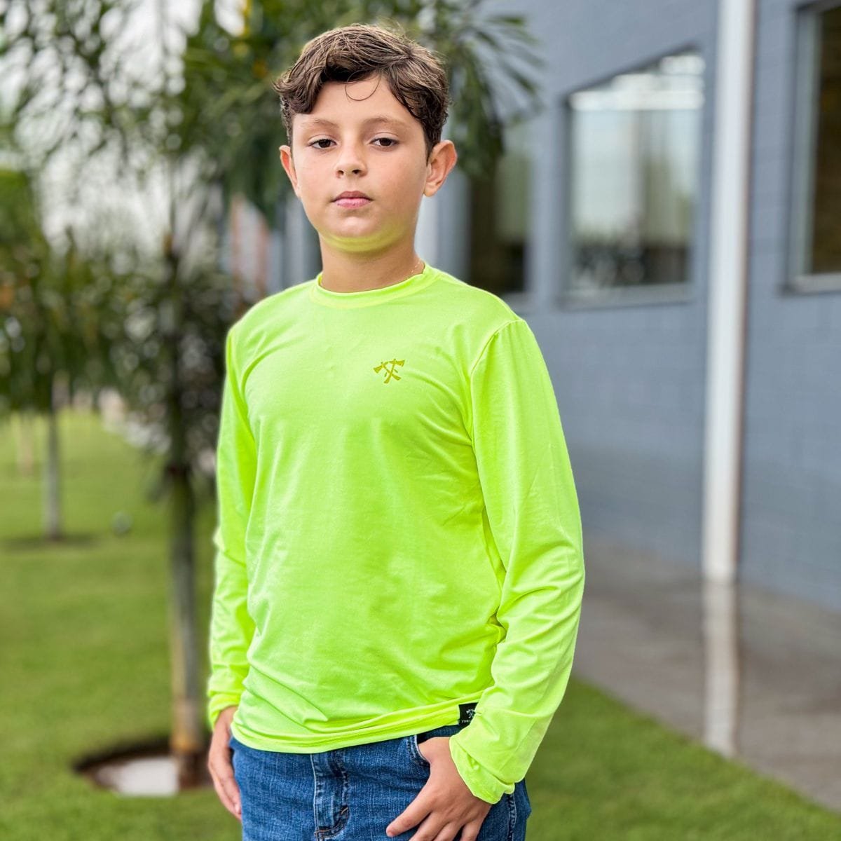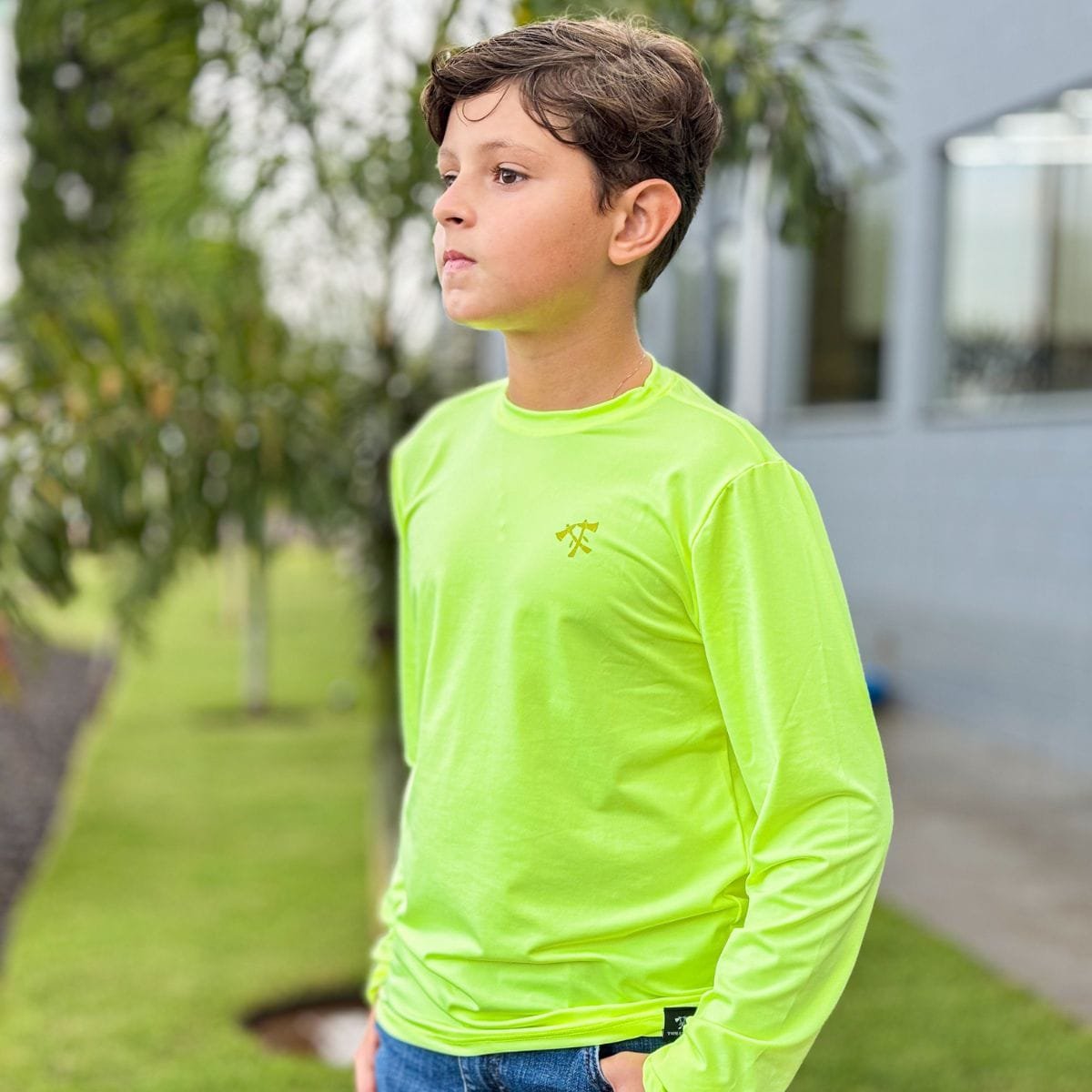 Por que escolher a Camiseta Infantil UV Tomahawk Manga Longa Verde Limão?
