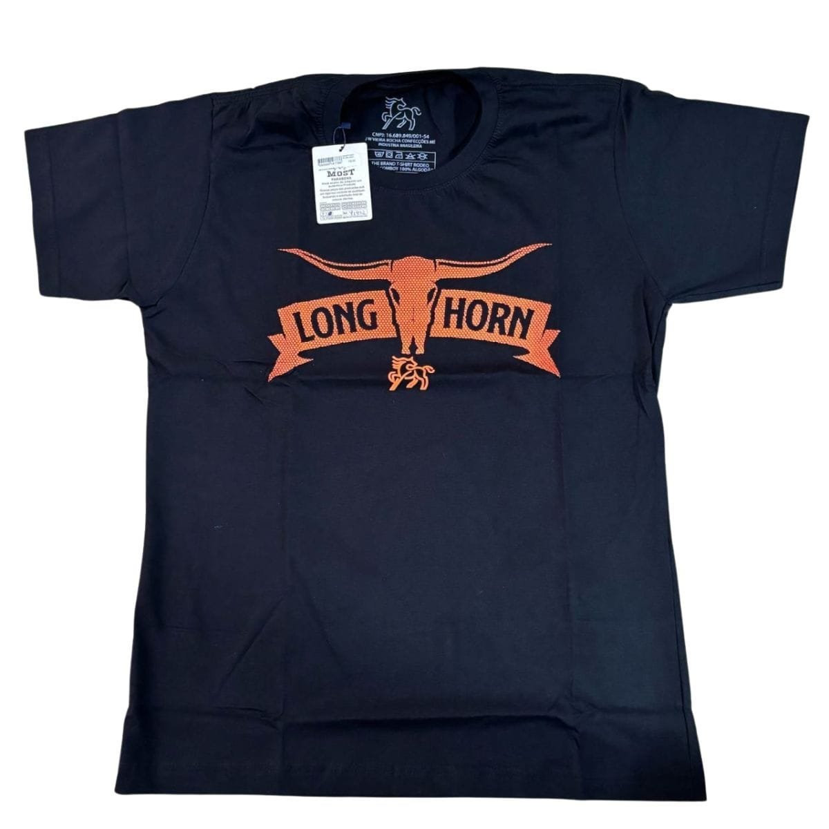 Camiseta Masculina Most Rodeio Preto Estampa Long Horn Laranja – Estilo e Conforto no Universo Country!